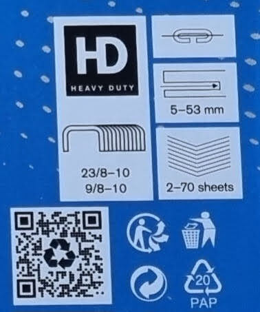 Compatible with 23/8mm staples – (2 to 50 sheets) & 23/10mm staples (40 to 70 sheets).